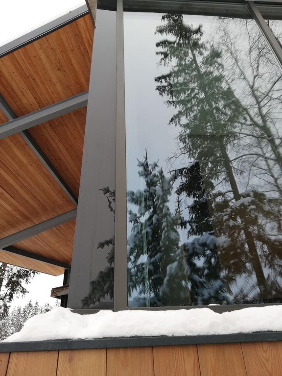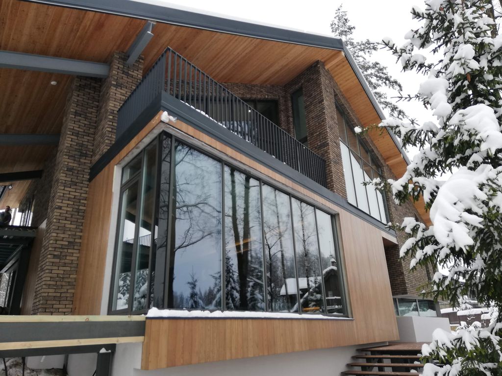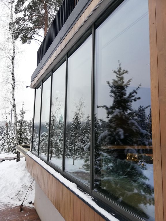 Чтобы реализовать широкую обзорность ландшафта и лесного массива где и расположен Дом, естественным образом применены: