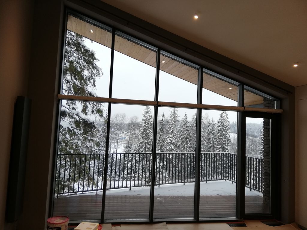 Скандинавский стиль предполагает наличие больших оконных проемов, ведь внутри должно быть очень светло.