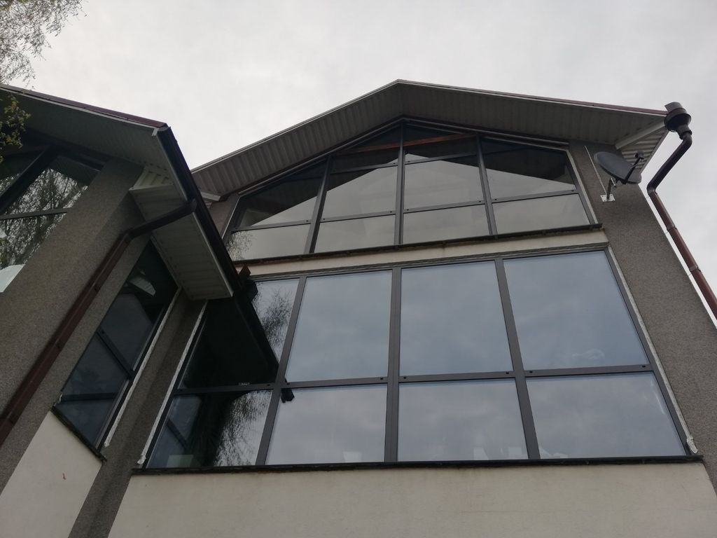 В витраж смонтированы два параллельно-раздвижных окна Patio Roto