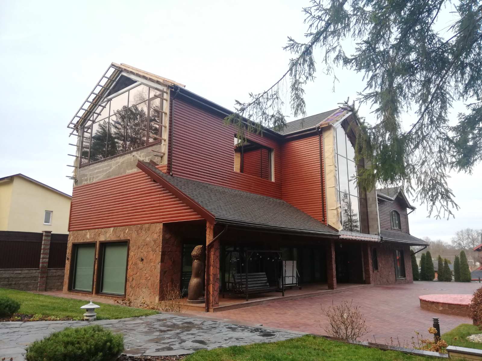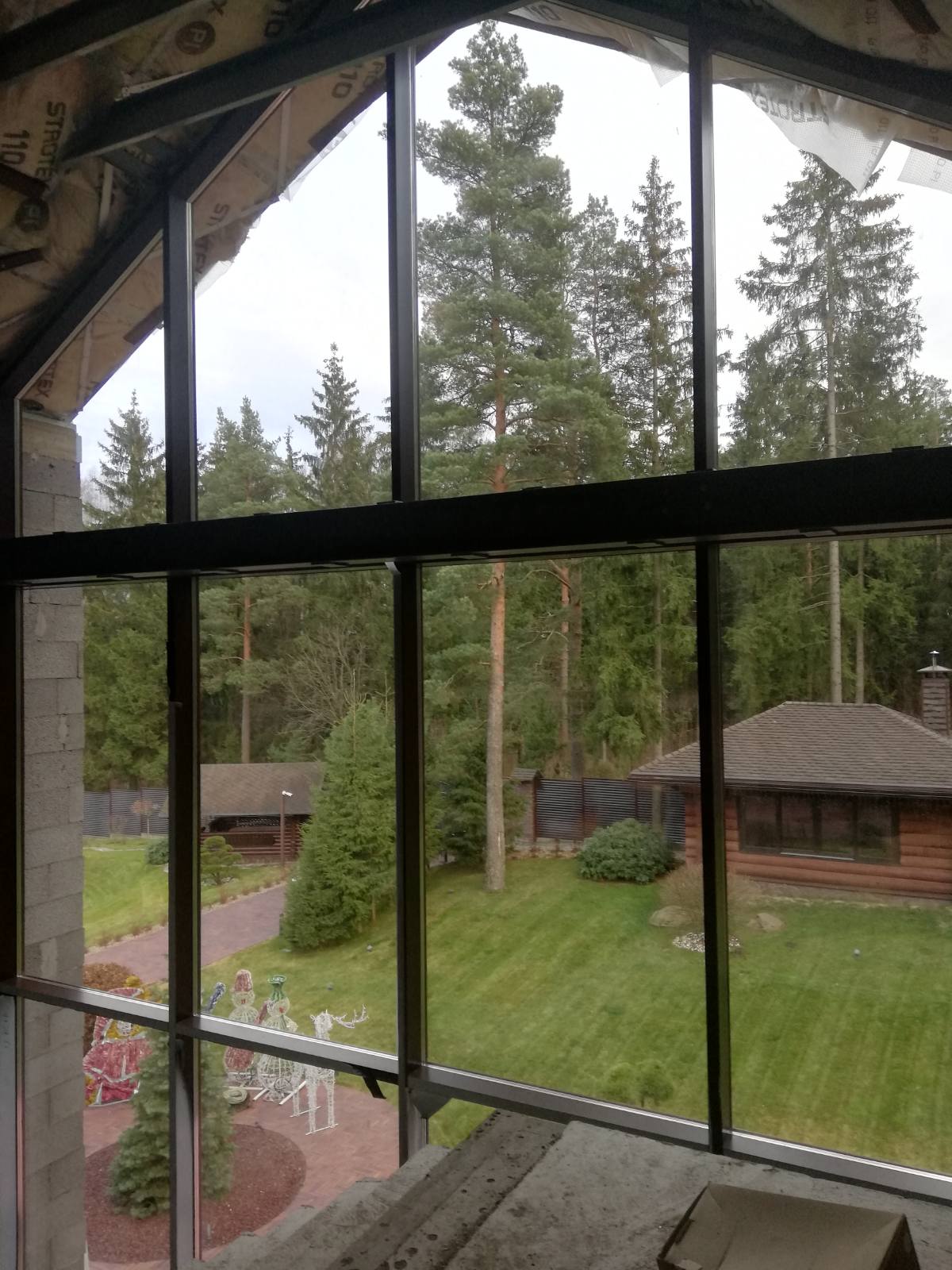 Коттедж High-tech (натуральные материалы + алюминиевые витражи в каркасе ЛСТК)