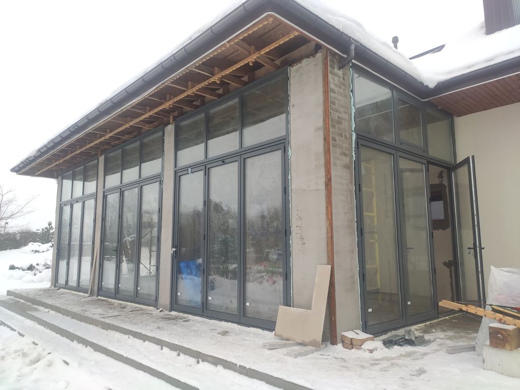 Премиальное решение для теплой террасы, которая эксплуатируется в зимне-осенний период. Предусмотрены фрамуги на электроприводах для проветривания, с двух сторон.
