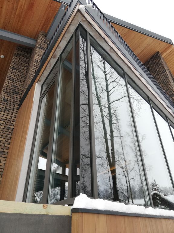 Скандинавский стиль предполагает наличие больших оконных проемов, ведь внутри должно быть очень светло.